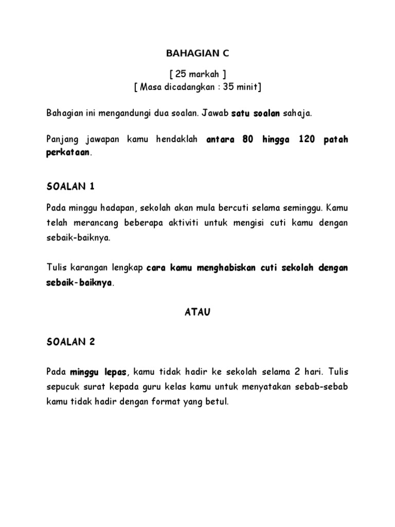 Soalan Bm Bahasa Melayu Penulisan Tahun 5 Pdf